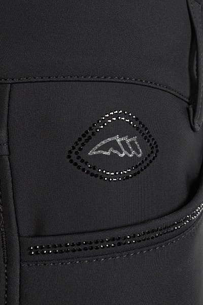 冬用極暖BX-TECH生地。内側フリース生地。ウエスト内側は滑り止めグリップ付き。ラインストーン&グリッターロゴ装飾。2フロントポケット。