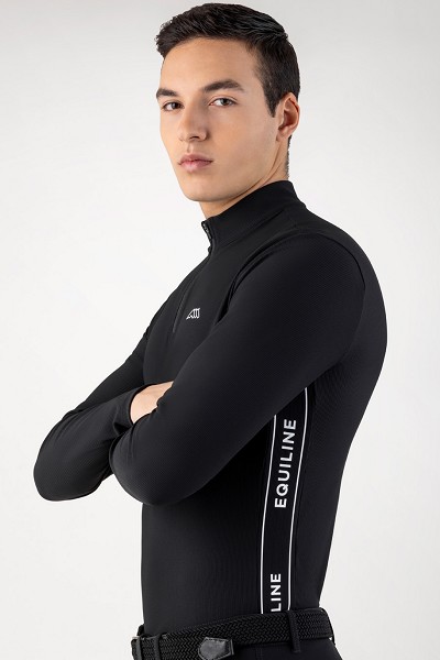 ハーフジップセカンドスキン。通気性&伸縮性の良い通年リブ生地。クイックドライ。両サイドにロゴライン。