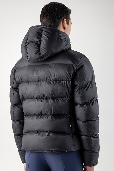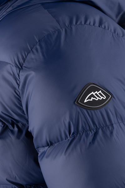 光沢中綿ジャケット。2ジップポケット+内ポケット。2wayジップ。裏地はE-TRWサーモシルバーで、体から放出された熱を反射し保温します。収納式のフロント3Dメッシュ!抜群の通気性を確保。フードはボタンで固定可。