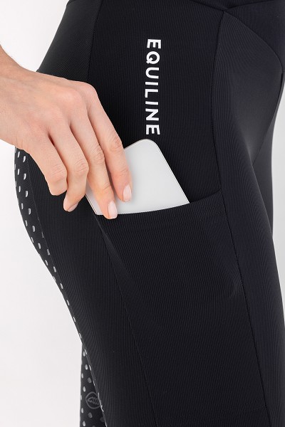 通年リブ生地レギンス。通気性・伸縮性◎綺麗にフィットするVウエストバンド。ウエスト内側は滑り止めグリップ付き。携帯用サイドポケット。