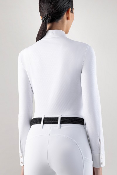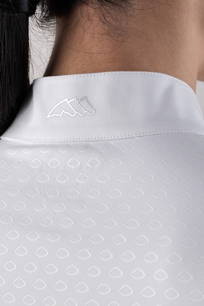 競技用長袖ポロシャツ。本体同色のパターンラバープリント。