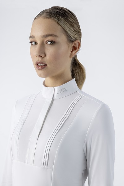 長袖競技用シャツ。襟にマイクロスタッズロゴ。クイックドライ。