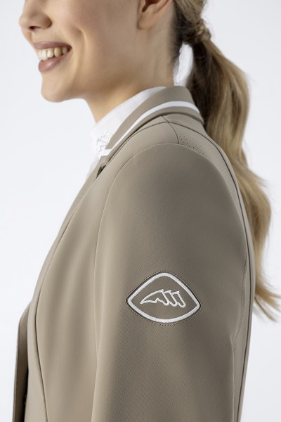 マイクロホール生地競技用ジャケット。フロントはジップ&ボタン。エアバッグベスト対応。イージーケア&クイックドライ。