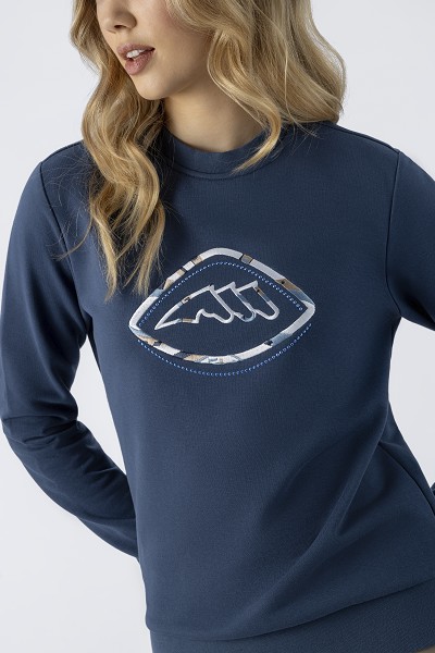 スウェットシャツ。袖口と裾はリブ切替。刺繍&マイクロスタッズロゴ。