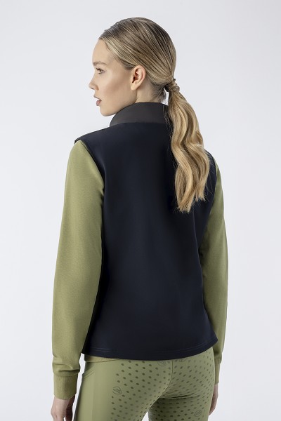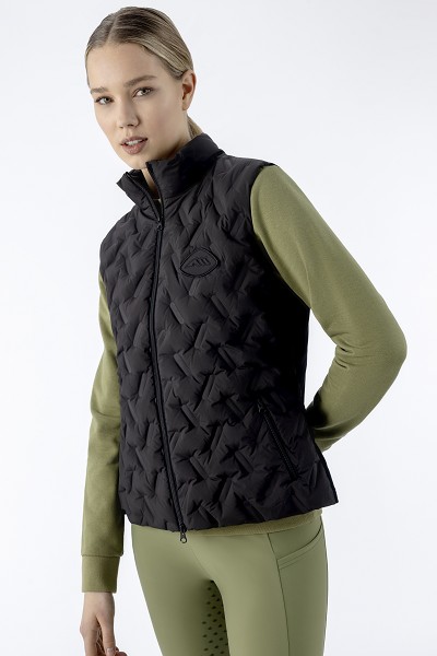 キルティングベスト。背面はテック生地切替。2wayジップ。2ジップポケット。