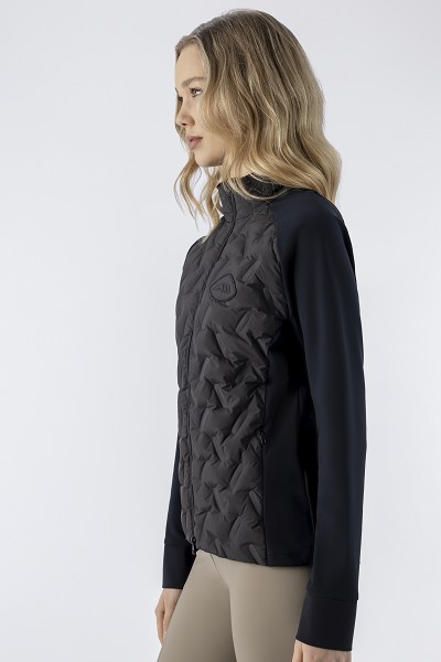 フロント部分はキルティング&袖と背面はテック生地のジップジャケット。2wayジップ。2ジップポケット。